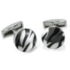 Μεταλλικά μανικετόκουμπα από ανοξείδωτο ατσάλι σε οβάλ σχήμα με επισμάλτωση και ωραίο σχέδιο με ασύμμετρες πολύχρωμες ρίγες.