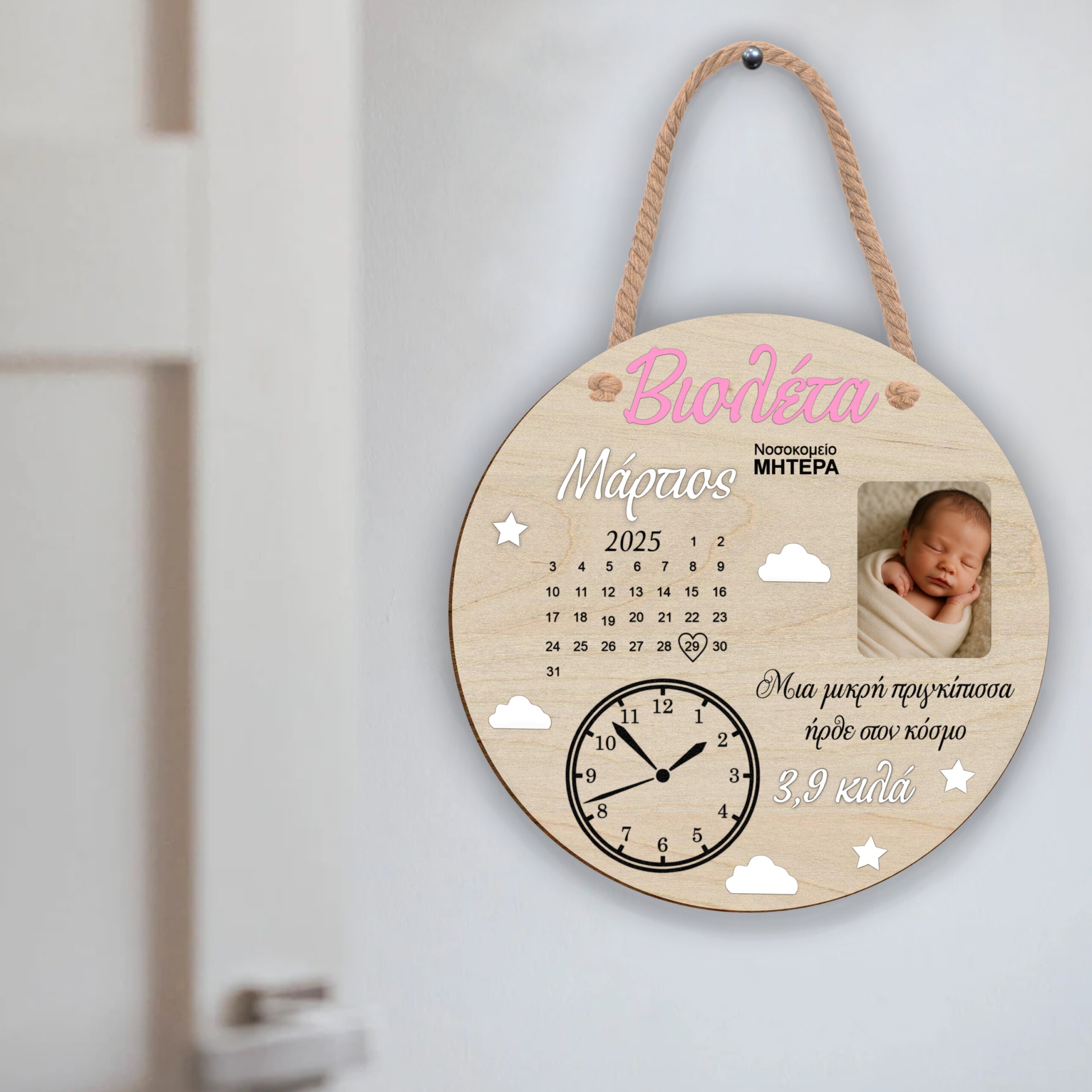 Προσωποποιημένη Ξύλινη Πινακίδα Ανακοίνωσης Γέννησης