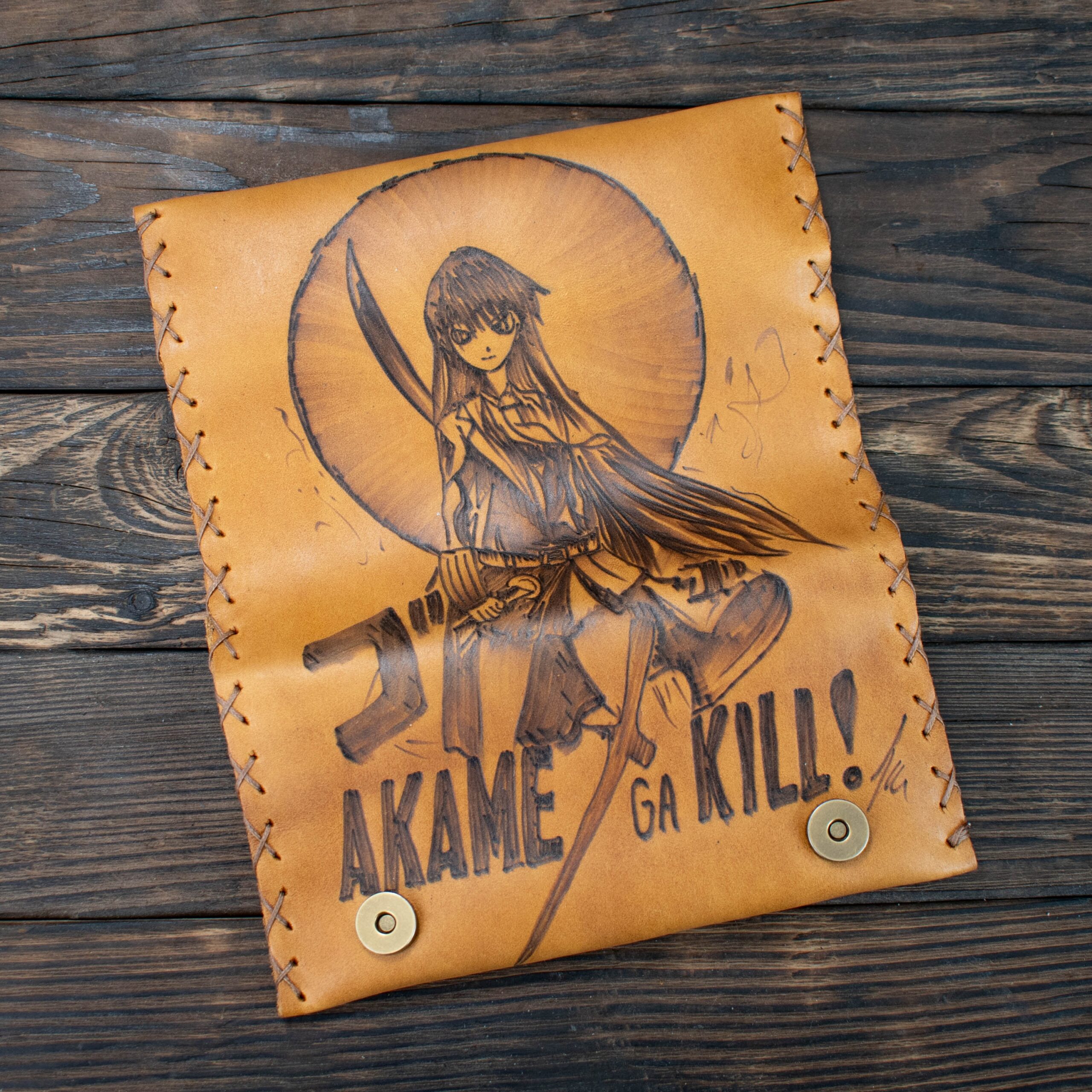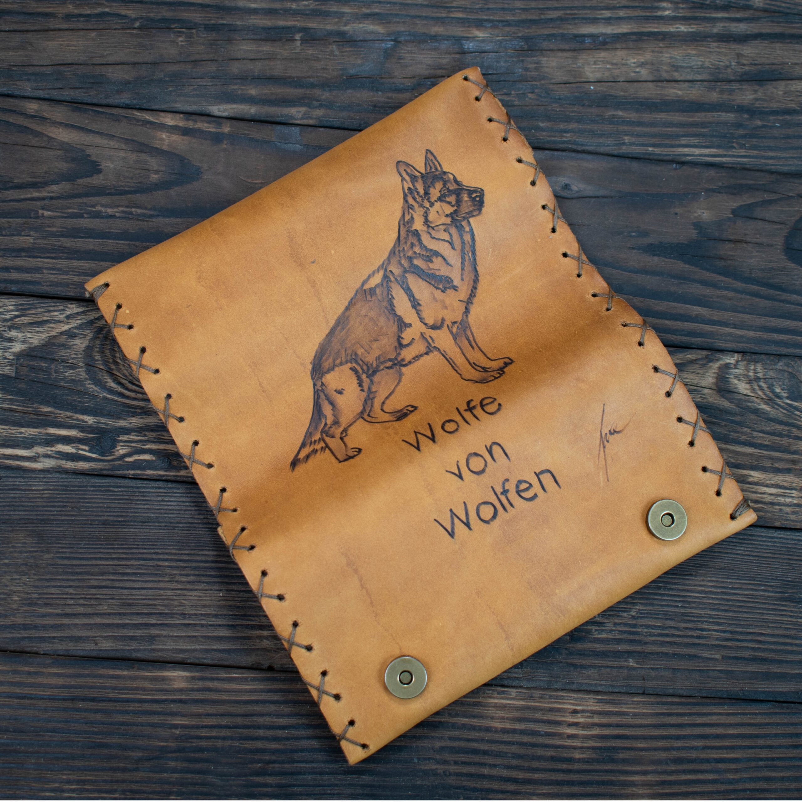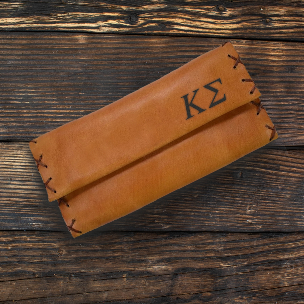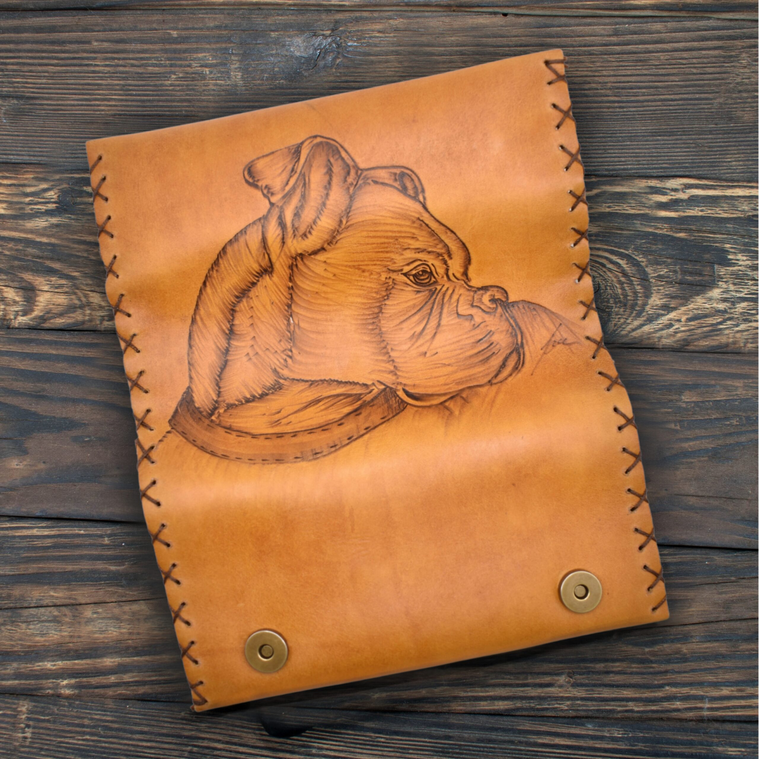 Από χοντρό φυσικό δέρμα διακοσμημένη στο χέρι με τη μέθοδο της πυρογραφίας για να αποθηκεύετε και να μεταφέρετε με στυλ τον καπνό σας.
