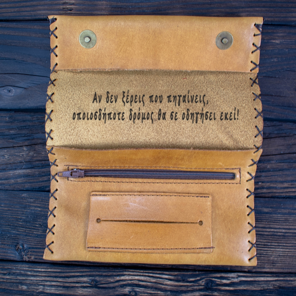 Κάθε κομμάτι είναι μοναδικό, δουλεμένο με μεράκι και φροντίδα. Έχει διπλό κλείσιμο με μαγνήτες, θήκη με φερμουάρ και θήκη για τα χαρτάκια.