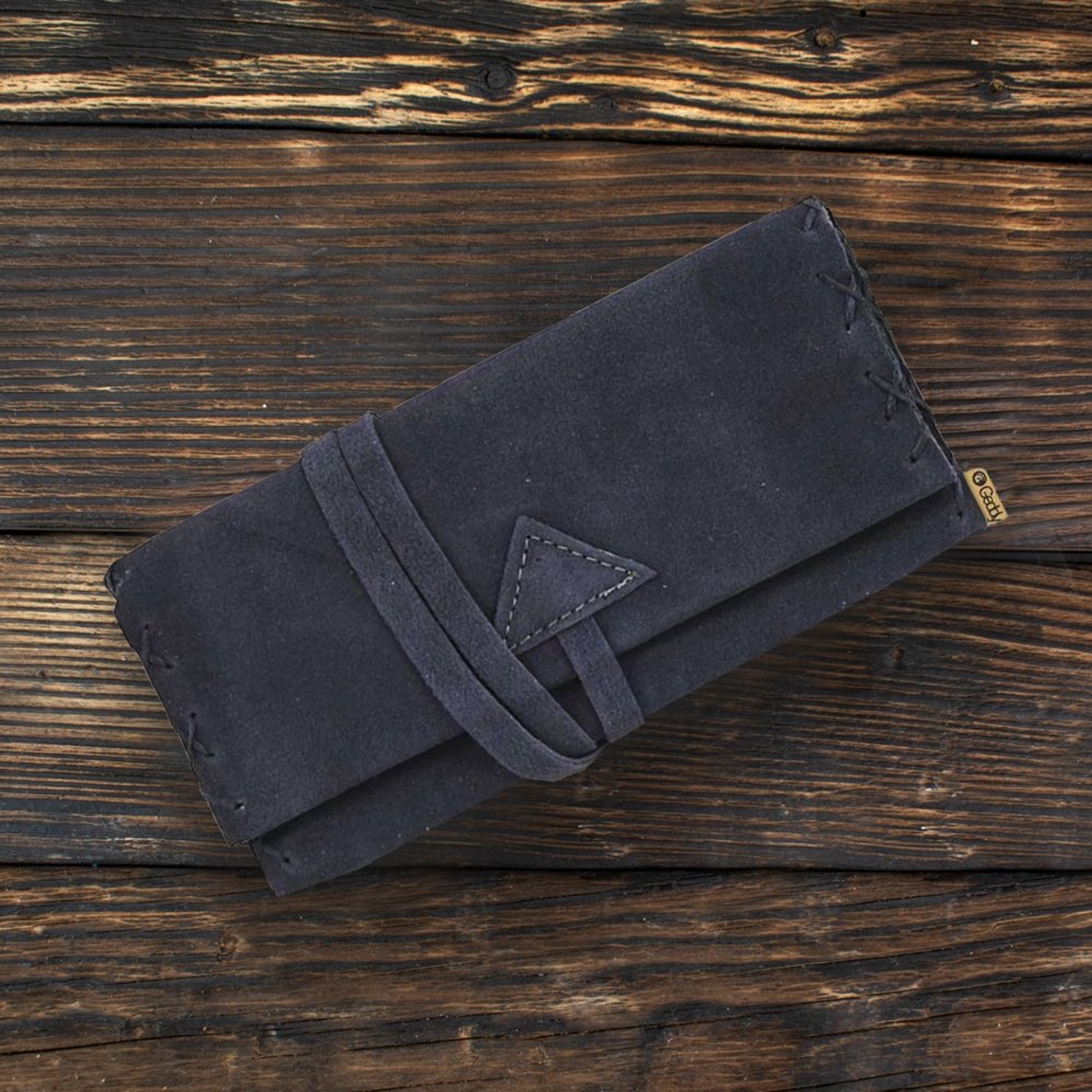 Χειροποίητη Δερμάτινη Καπνοθήκη Suede – Σκούρο Μπλε με Κορδόνι