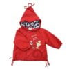 Λεπτό μπουφανάκι από βαμβακερό ύφασμα με σχέδιο κεντημένο παπάκι, κουκούλα και πουά φόδρα.