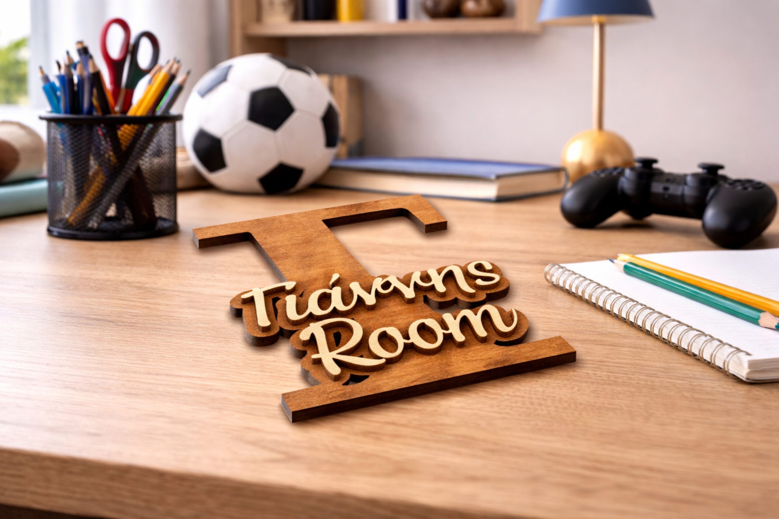 Ξύλινη διακοσμητική πινακίδα μονόγραμμα με επικολλημένο το όνομα για την πόρτα του παιδικού δωματίου.