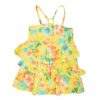 Υπέροχο παιδικό βαμβακερό σιέλ φορεματάκι με σταμπωτά λουλούδια, λεπτές και φραμπαλάδες για εντυπωσιακές καλοκαιρινές εμφανίσεις.